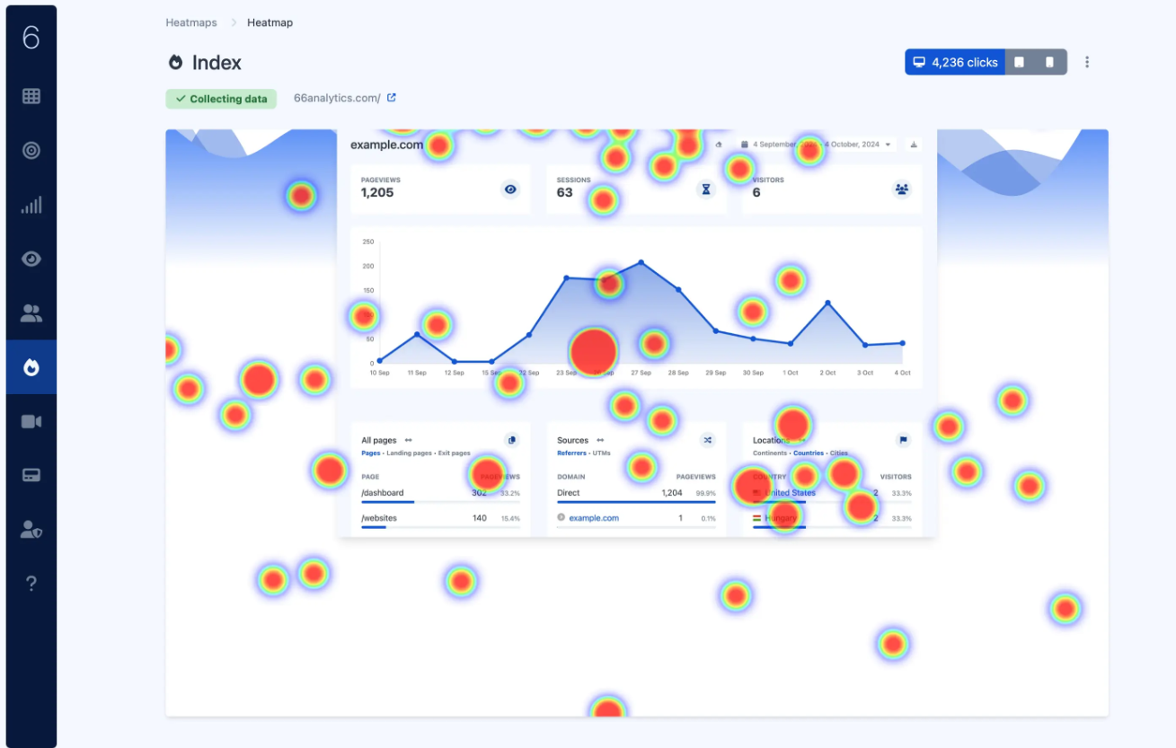 Easy and friendly analytics. Track your users journey, replay sessions, collect heatmaps & more.