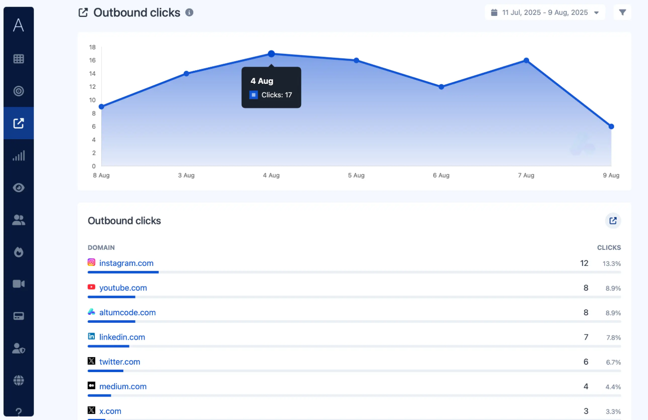 Track the link clicks that go outside of your website. Learn where your users go when they leave your website.