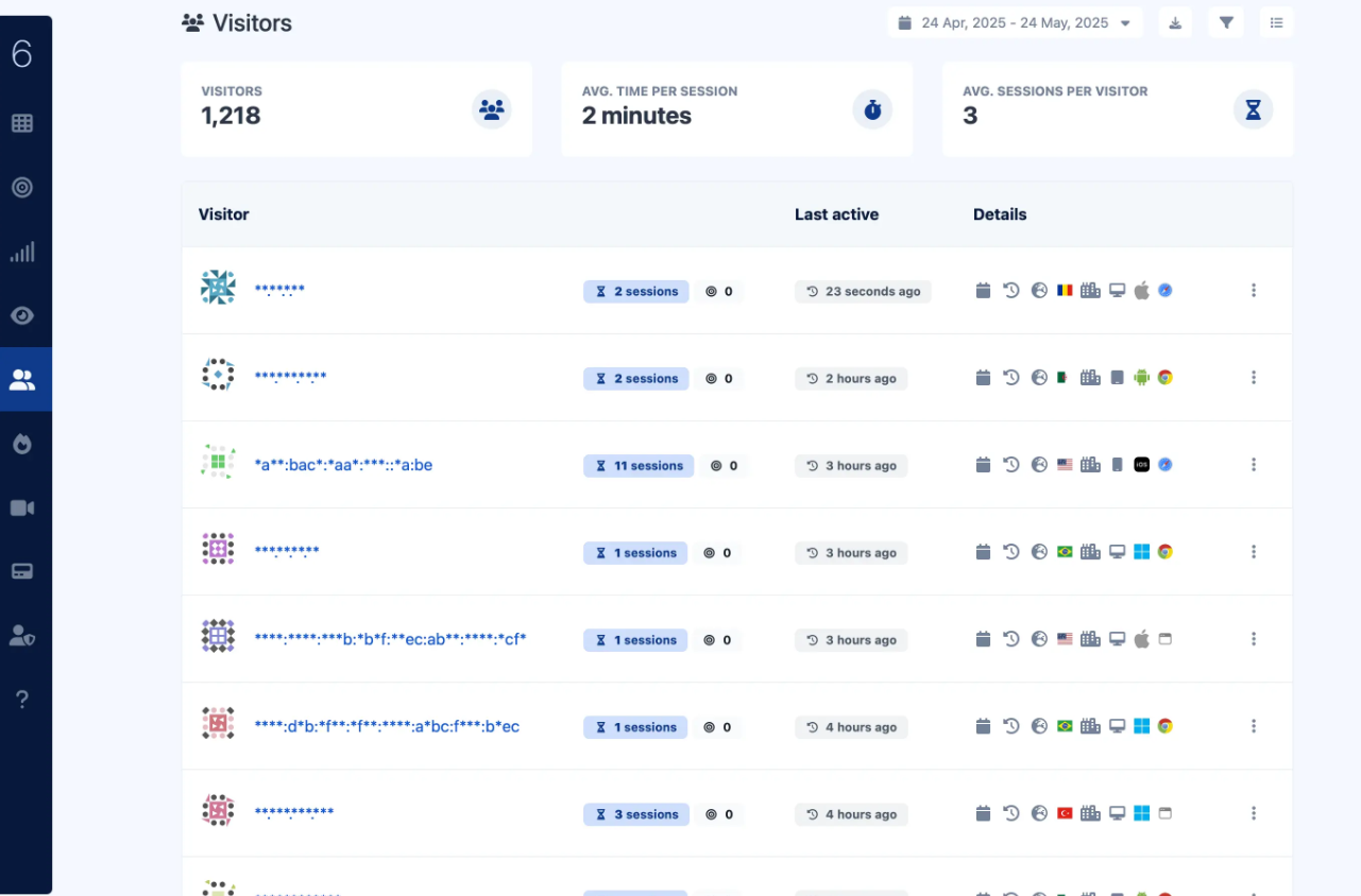 Fully anonymized history of visitors. Get to know when your visitors come back and what they are doing.